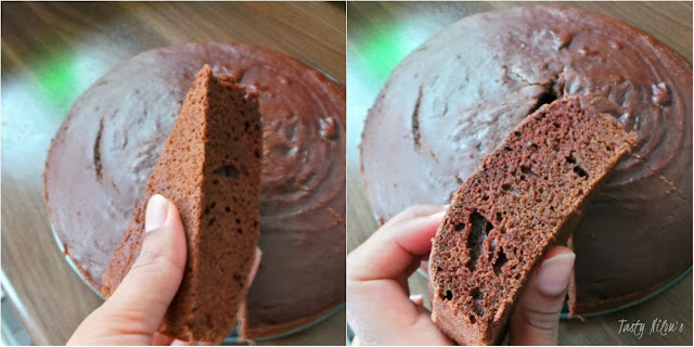 This is how the mixture should look like to get to this, stir the mixture for 5 full minutes. Pour into 2 greased round cakemolds. Major plus, with this mixture you can make 2 cakes! Which you can staple on each other filled with jam or whipped cream!